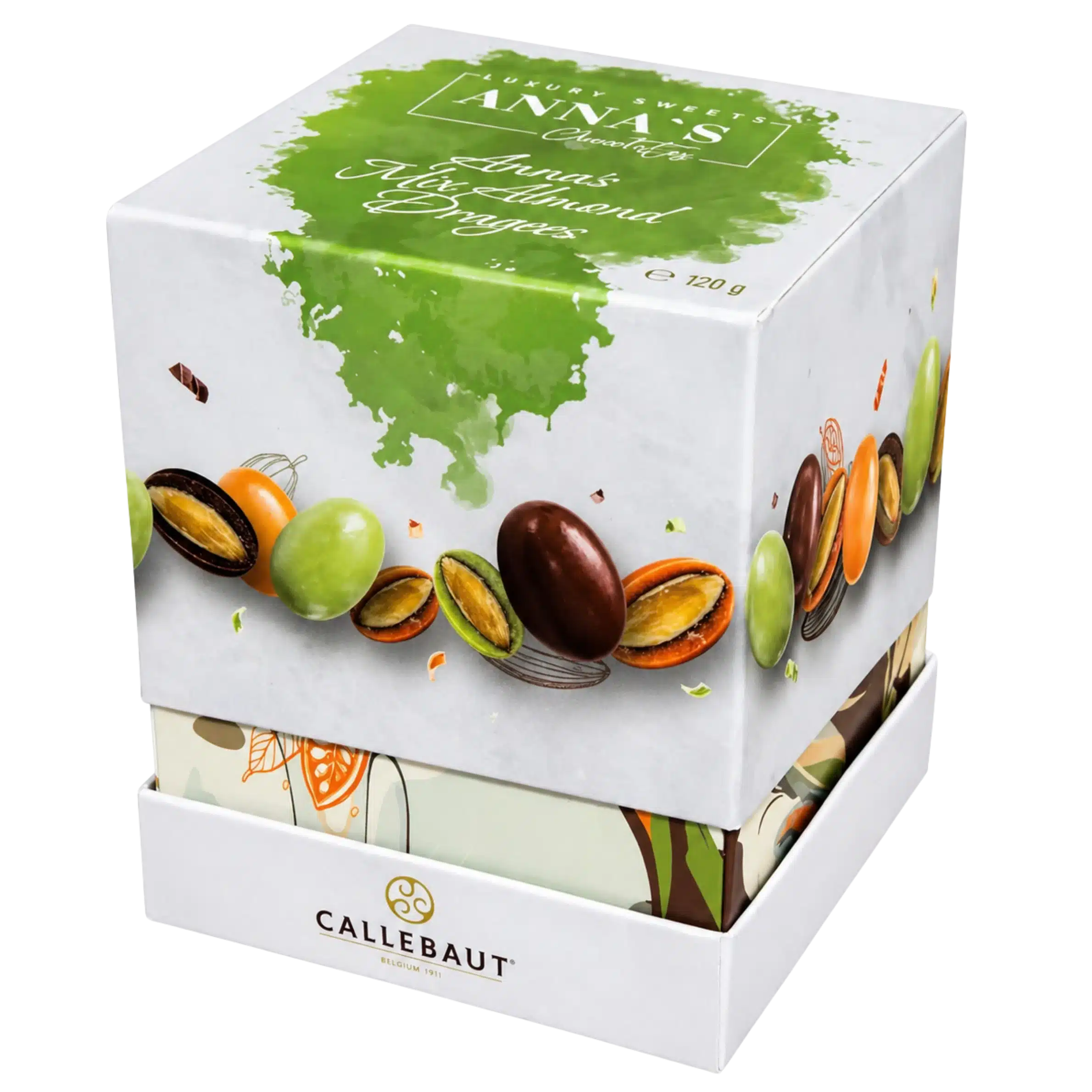 млечен шоколад 35.1% (захар, какаово масло, пълномаслено МЛЯКО на прах, какаова маса, емулгатор: СОЕВ лецитин, естествен ароматизант – ванилия), печени БАДЕМИ, сладкарски продукт с какаово масло (захар, какаово масло 29%, пълномаслено МЛЯКО на прах, емулгатор: СОЕВ лецитин, естествен ароматизант – портокал, оцветител Е160е, естествен ароматизант – ванилия), сладкарски продукт с какаово масло (захар, какаово масло 27.5%, пълномаслено МЛЯКО на прах, емулгатор: СОЕВ лецитин, естествен ароматизант – лимон, оцветители Е132, Е100, естествен ароматизант – ванилия), дехидратирана глюкоза, какаово масло