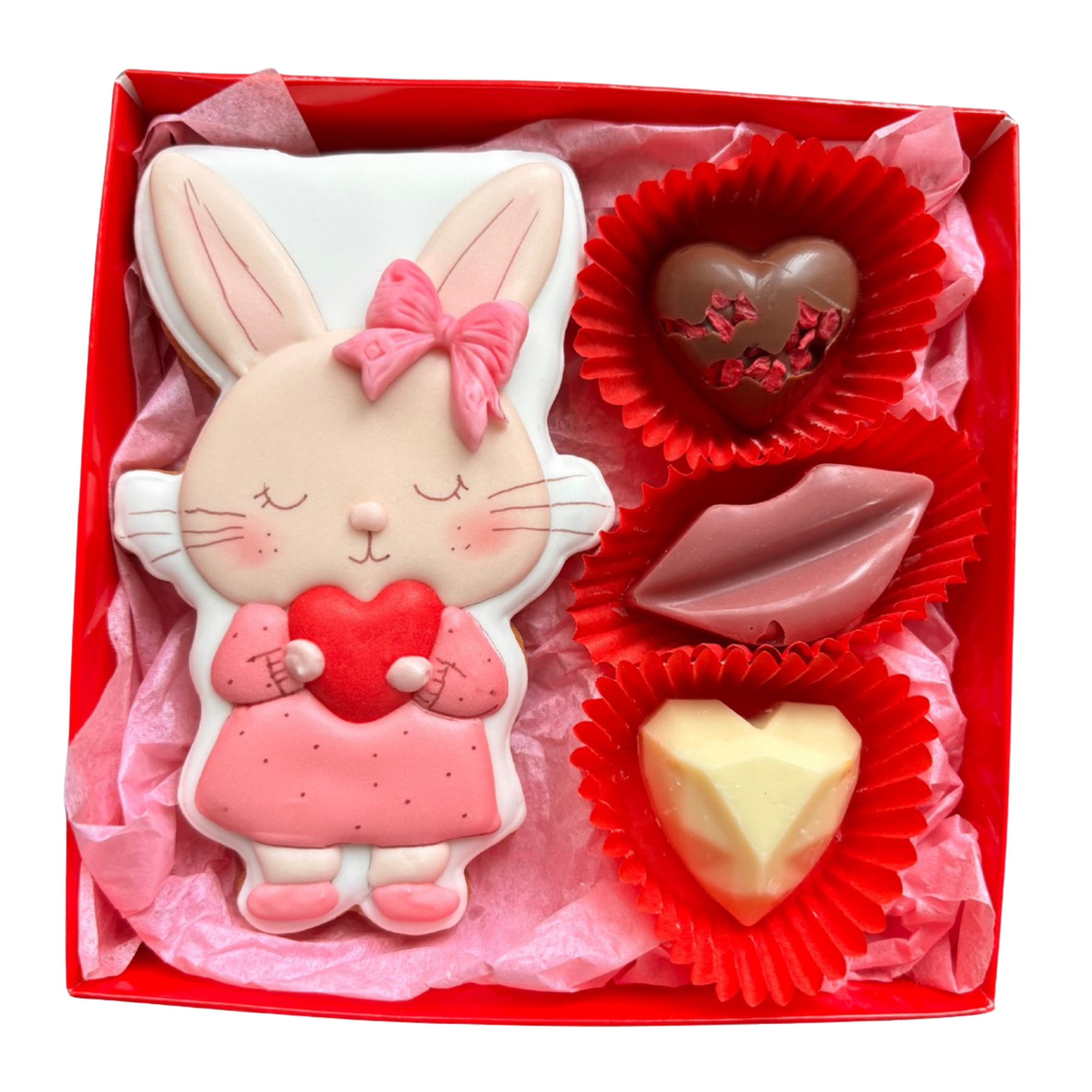 Микс от висококачествен белгийски шоколад Callebaut – бял шоколад, млечен шоколад и руби шоколад, сушени портокали, криспи руби, криспи карамел, сушена малина.