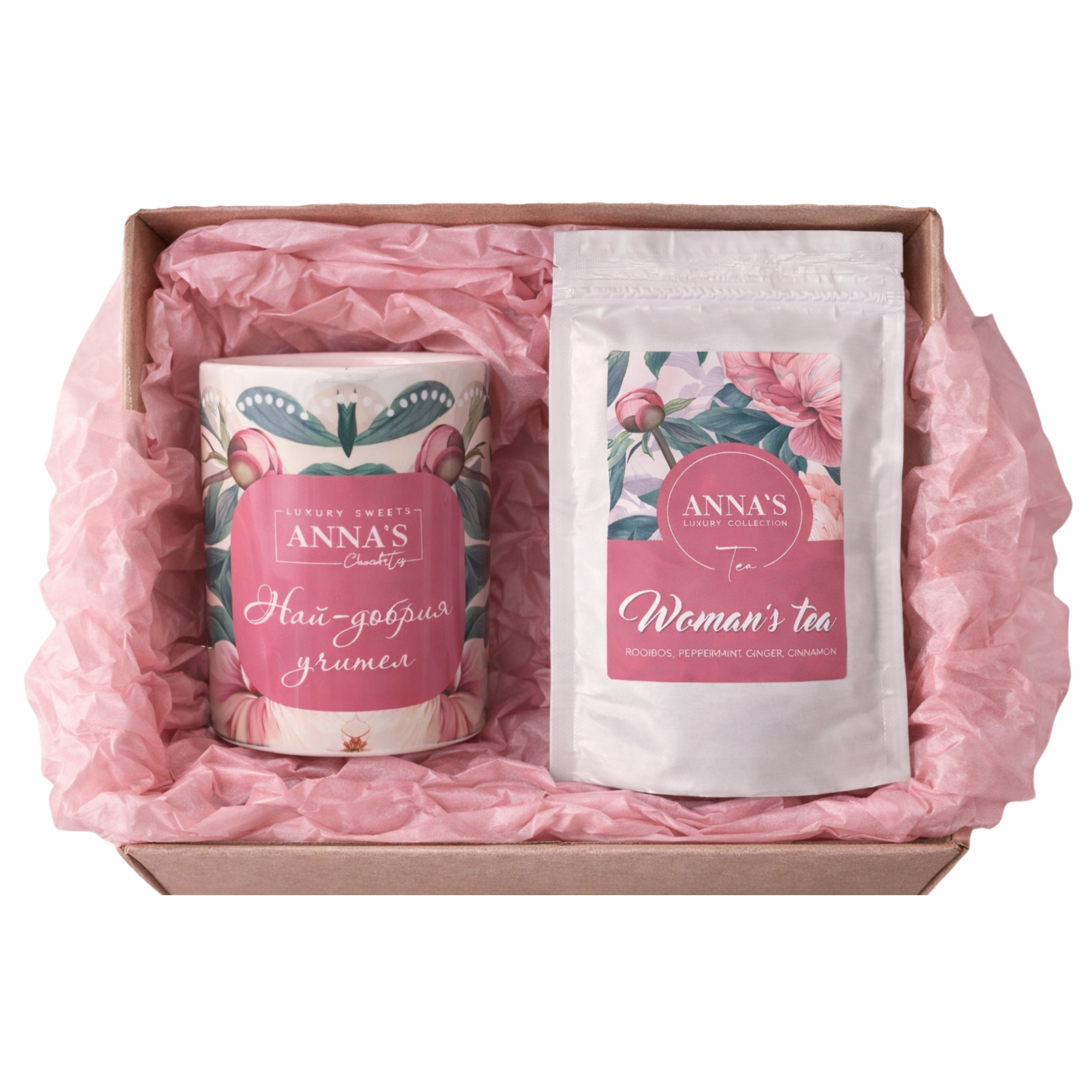 Кутия „Цветен разкош“ съдържа чай „Woman’s Tea“ и чаша
